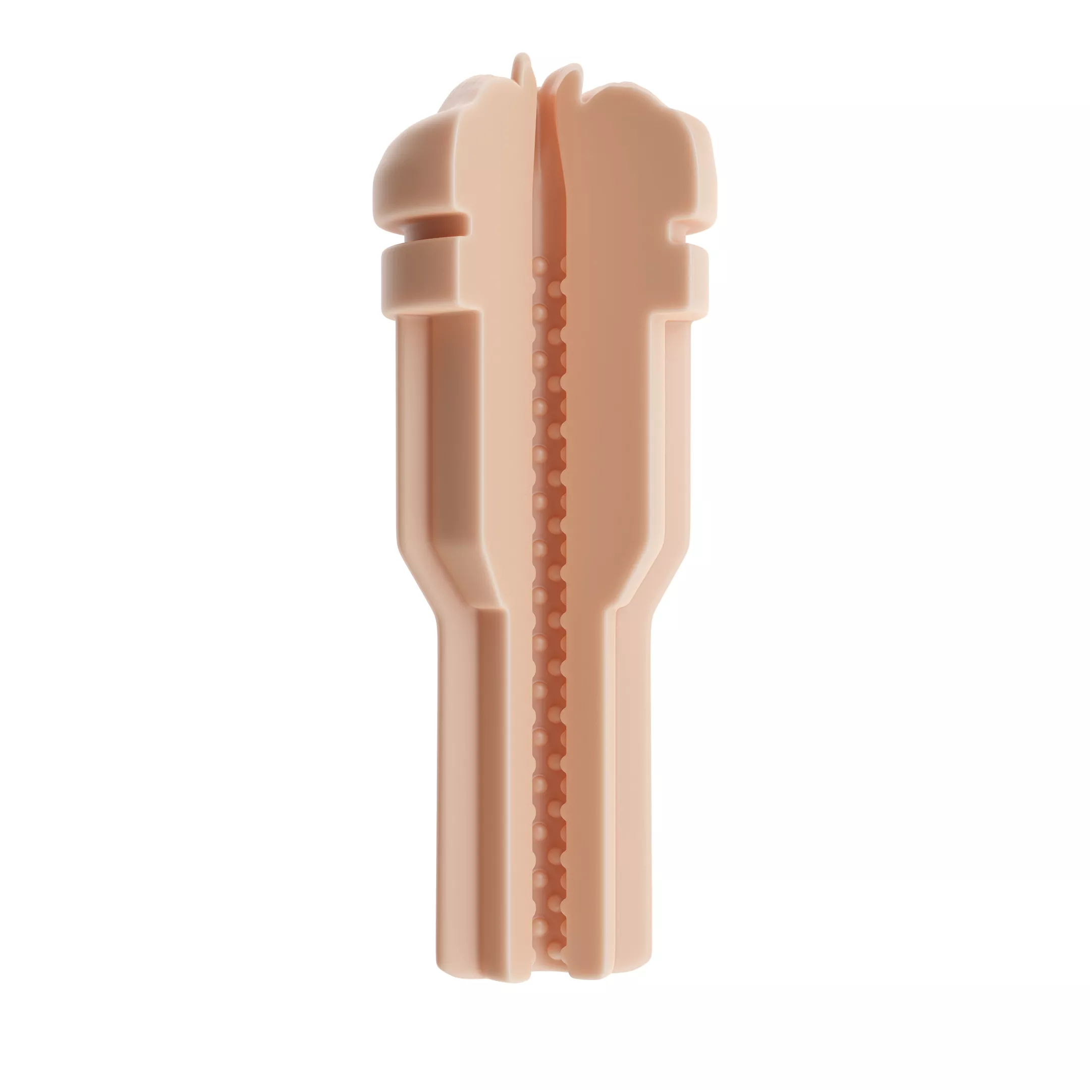The Autoblow Ultra is compatible with a series of interchangeable sleeves displaying different orifices and having different textures. Made from realistic feeling TPR, this beige colored vagina sleeve has a specially designed internal texture for added stimulation. The Ultra sleeves are our easiest ever to clean because you can run soapy water through the top of the sleeve through a hole at the bottom, and easily dry it.