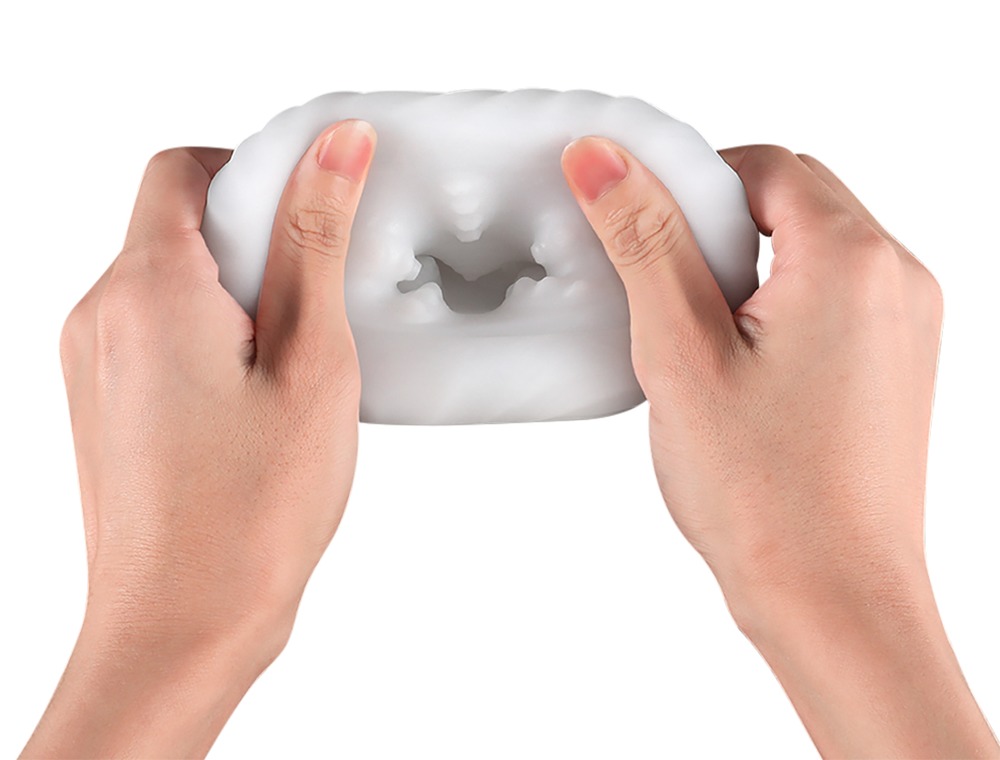 The masturbator has a soft, stretchy sleeve with massaging dots and adapts to any penis size. The sleeve can also be removed for easy cleaning.