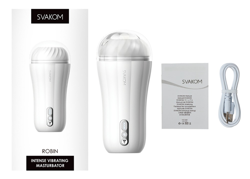 High-performance masturbator Robin from SVAKOM that stimulates the penis with 5 intense and extraordinary vibration modes that perfectly combine power and motion. It also features a unique boost function which is easily activated at the push of a button and lets a user reach an intense climax in no time. The practical LED display shows the different modes and also the battery level.
