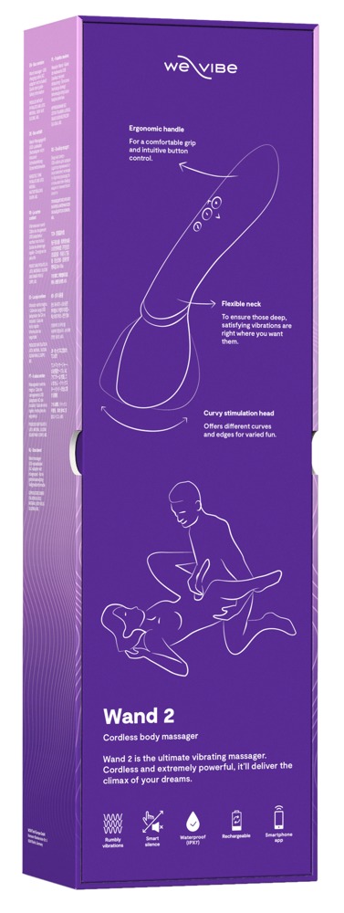 The ultimate massage wand Wand 2 from We-Vibe has a new, smaller design but particularly strong vibrations. The slender, ergonomic handle makes controlling the toy and enjoying it extremely comfortable. The movable neck and wonderfully shaped Soft Touch massage head reach erogenous areas easily to provide superb stimulation. The powerful massage wand is very versatile and can be used during solo or partner play.